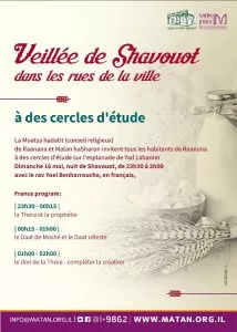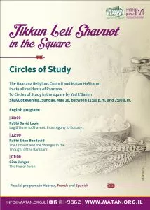 תושבי רעננה מוזמנים ללימוד ליל שבועות, יום ראשון 16.5.21, 23:00-02:00 ברחבת יד לבנים רעננה.