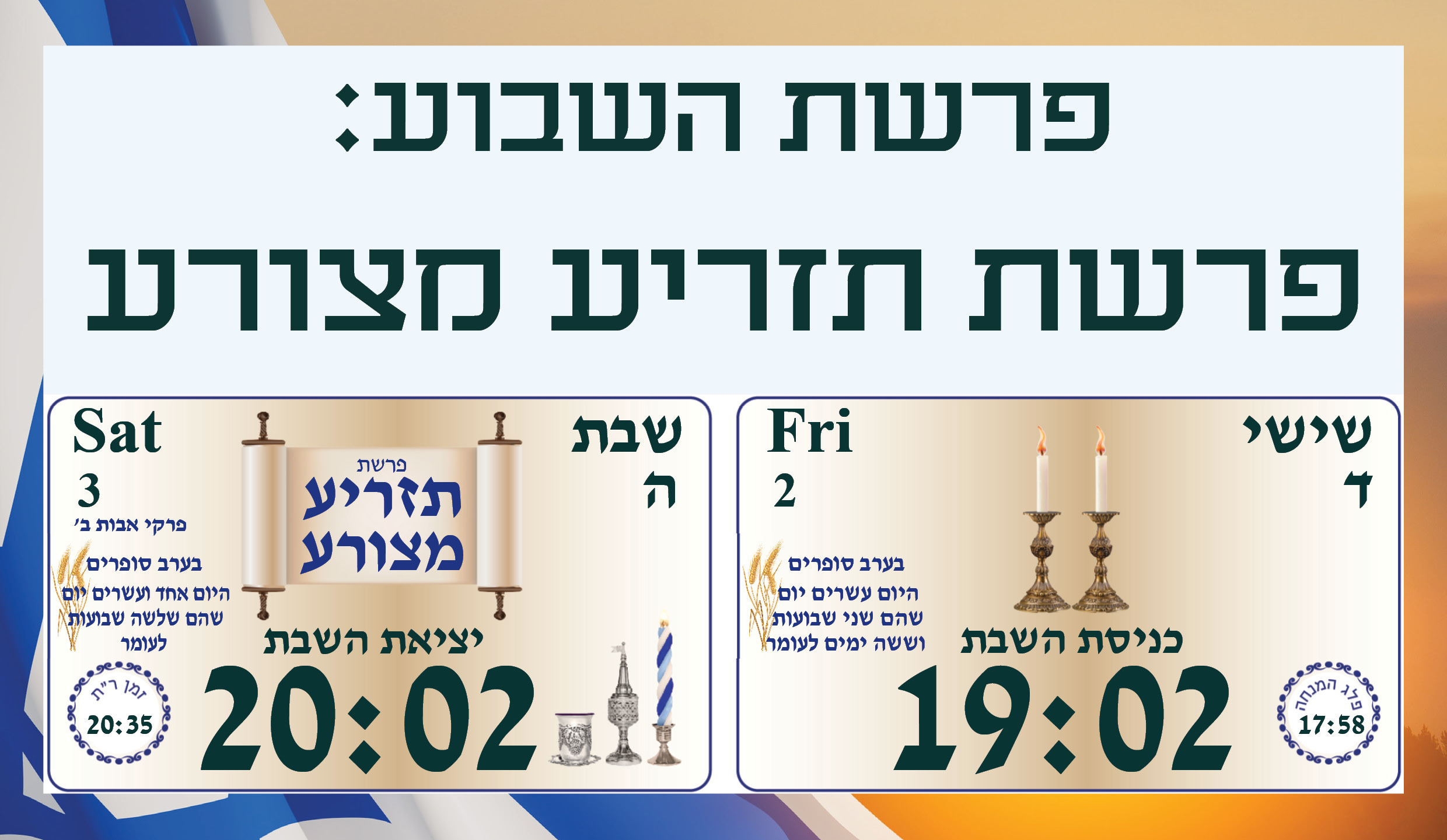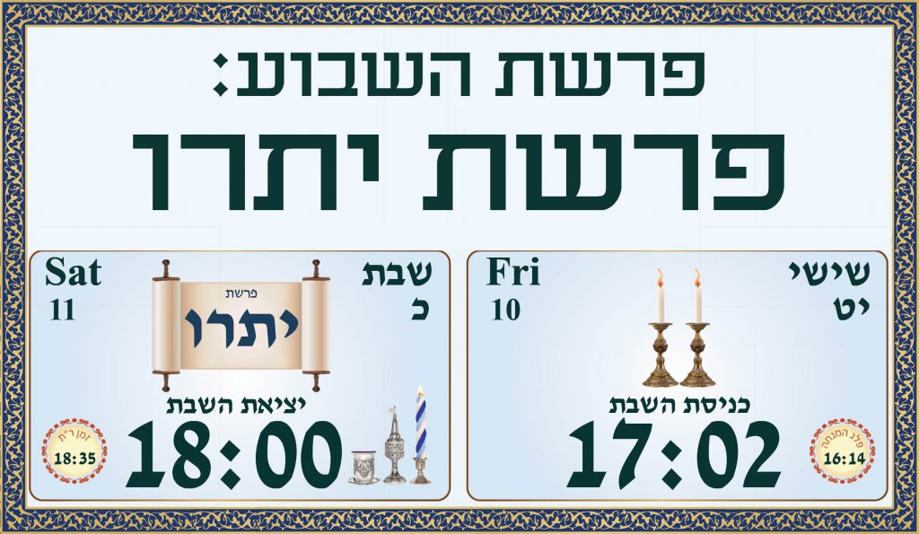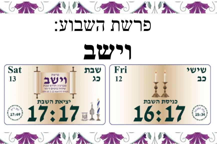 זמני כניסת שבת פרשת וישב כניסת שבת 16:17 יציאת שבת 17:17