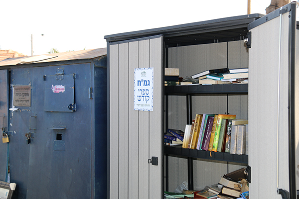 לצד מכלי הגניזה (למעט אלפסי) מוצב ארון גמ"ח ספרי קודש.