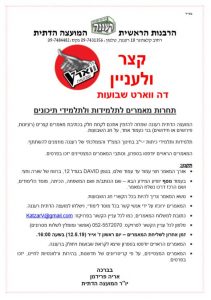 • המאמרים ירוכזו על ידי אנשי קשר בכל מוסד לימודי, וישלחו למועצה הדתית רעננה.