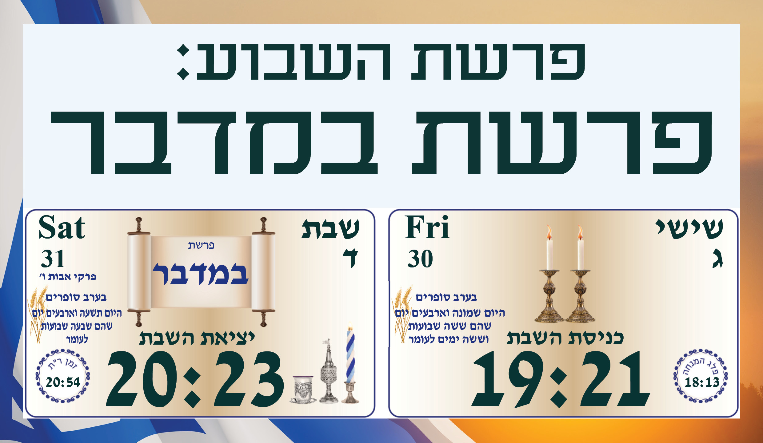 ראשי » זמני כניסת שבת » זמני כניסת שבת פרשת במדבר