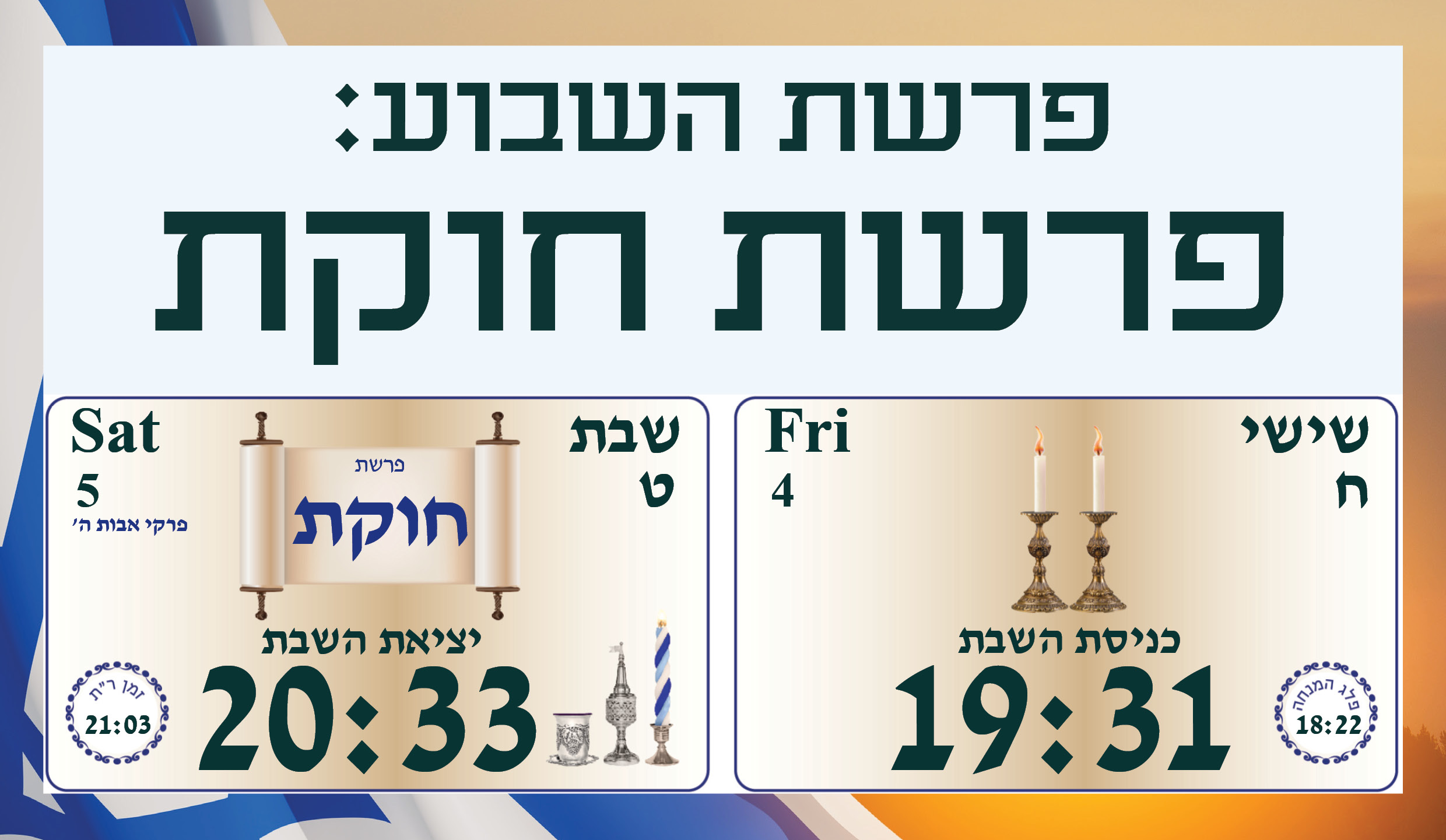 ראשי » זמני כניסת שבת » זמני כניסת שבת פרשת חוקת זמני כניסת שבת פרשת חוקת כניסת שבת 19:31 צאת שבת 20:33 « הקודםהבא » השארת תגובה ביטול