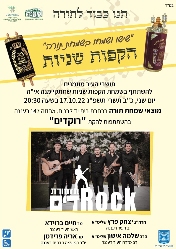 "שישו ושמחו בשמחת תורה" הקפות שניות תושבי העיר מוזמנים להשתתף בשמחת הקפות שניות שתתקיימנה אי"ה במוצאי שמחת תורה, כ"ב תשרי