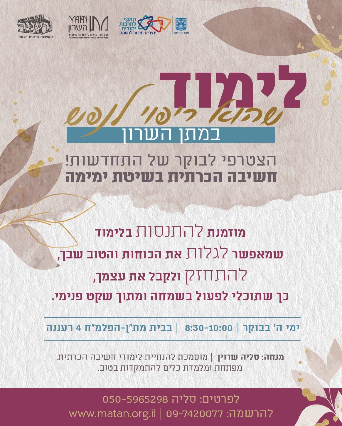 פרויקט קיץ – בית מדרש נוער קש"ת תשפ"ג ימים א'-ו' // 9:00-11:00 // י"ג תמוז – ח' אב // 2-26.7 בית כנסת מוריה, אחוזה 186